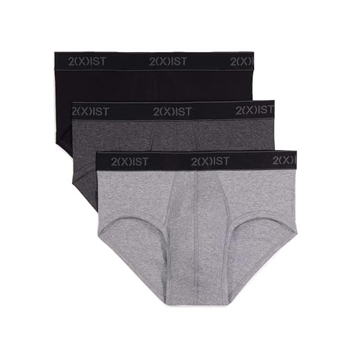 2(X) IST Herr Essential Cotton Contour Pouch Brief 3-pack underkläder (paket med 3), Svart/Grå/Träkol Heather, L