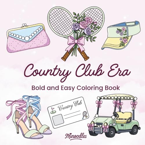 Country Club Era: Bold and easy coloring book of vintage country club fashion, elegant accessories, golf and tennis motifs for relaxation