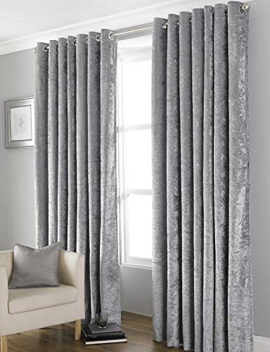 Country Club Bliss krossad sammet mörkläggning öljett helt fodrade termiska gardiner, grå, 90 x 90