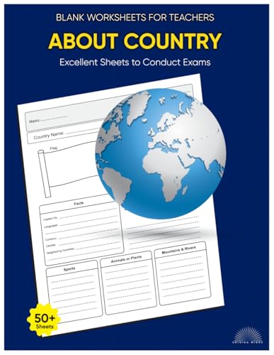 Blank Worksheets for Teachers - About Country: Excellent Sheets to Conduct Exams: 50+ Sheets | 8.5'x11' size | Prompts for drawing flags, map ... facts and more | Best gift | Home Schooling
