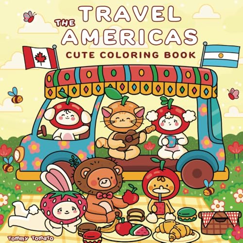 Travel the Americas: Cute Coloring Book for Teens and Adults Featuring Fun Animal Characters and Flags from Every Country with Easy and Relaxing Designs