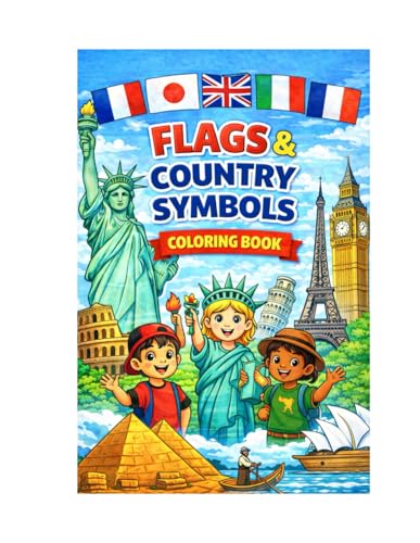 World Flags and Country Symbols Coloring Book: Educational Activity Coloring Book with Matching Task and Cultural Landmarks for Kids