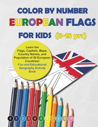 Color By Number: European Flags For Kids (Ages 5-15): Learn the Flags, Capitals, Maps, Country Names, and Populations of 50 European Countries - Fun and Educational Geography Activity Book