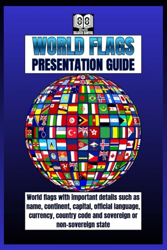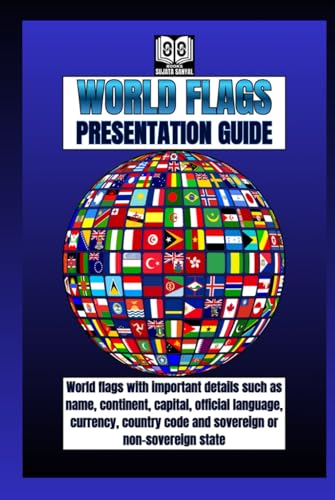 WORLD FLAGS: PRESENTATION GUIDE: Flags guide with some details of each country, like its name, continent, capital, official language, currency, country code, and whether it’s sovereign or not