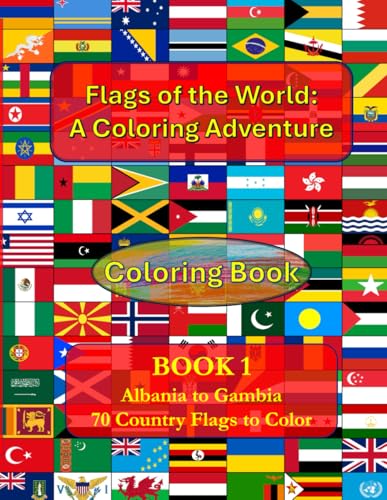 Flags of the World: A Coloring Adventure BOOK 1: Albania to Gambia - 70 Country Flags to Color