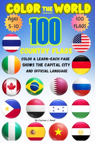Color the World: 100 Country Flags for Kids – Learn Capitals, Languages & Fun Facts: A Fun and Educational Coloring Book with 100 Country Flags, Capitals, Languages & Kid-Friendly Facts