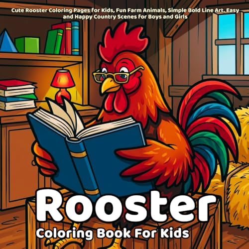 Rooster Coloring book: Cute Rooster Coloring Pages for Kids, Fun Farm Animals, Simple Bold Line Art, Easy and Happy Country Scenes for Boys and Girls