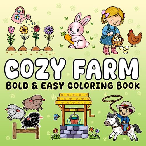 Cozy Farm: Bold & Easy Coloring Book, 43 Hand-Drawn Designs with Creative Cute Farm Animals, Country Lifestyle and More for Kids, Teenagers and Adults (Bold and Easy Series)