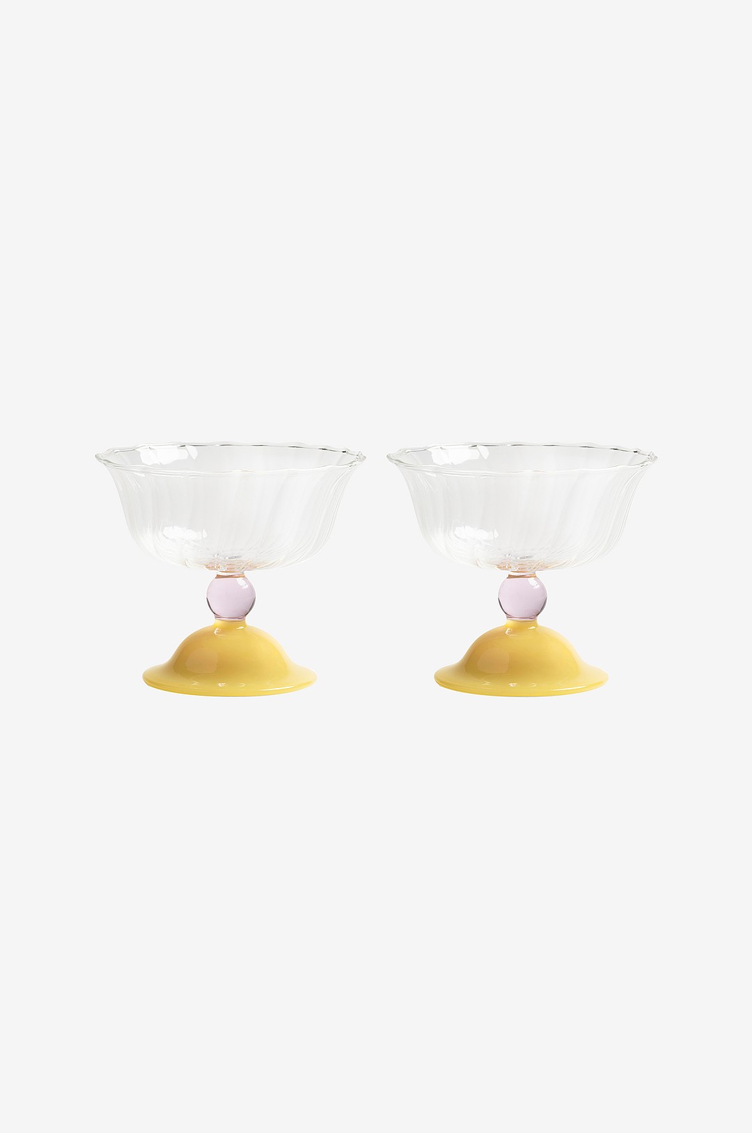 &k Amsterdam - Tulpan Coupe glas set om 2 - Gul