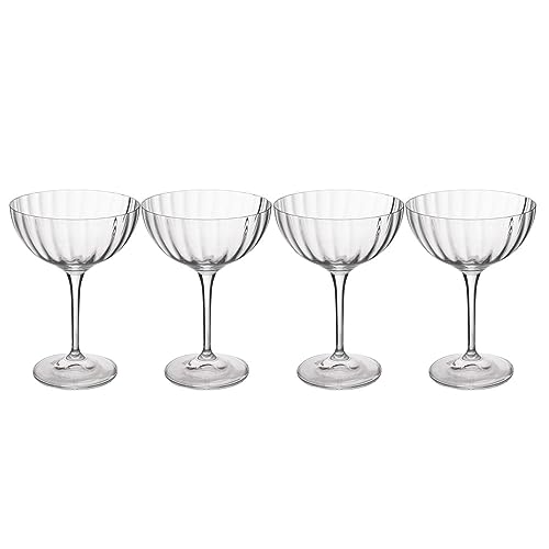MIKASA Treviso Crystal Coupe glas, 300 ml, set med 4 blyfria, klara fina glasögon med krusad effekt för firanden