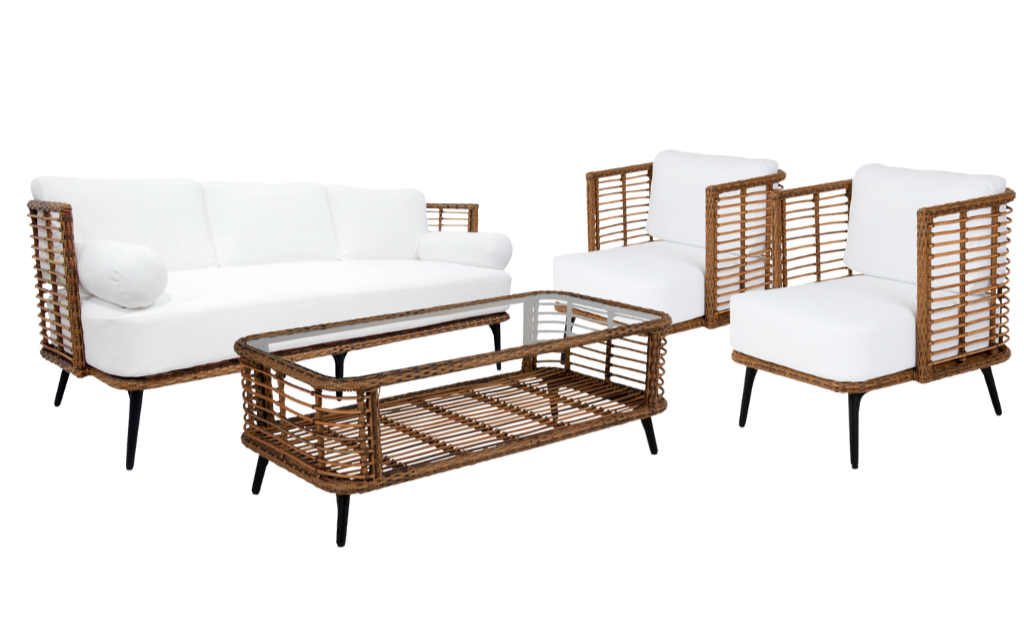 Brafab Covelo soffgrupp Natur med offwhite dyna 3-sitssoffa, 2 fåtöljer & bord