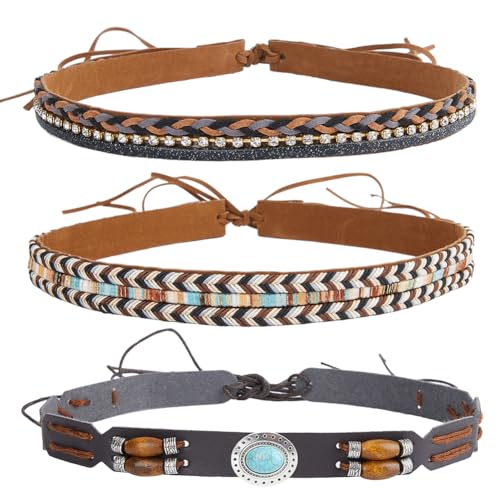 CRASPIRE 3 stilar cowboyhatt band handgjort imitationsläder flätad turkos strass etnisk västerländsk justerbar ersättning hatt bälte tillbehör för Fedora cowboy halm västerländsk hatt
