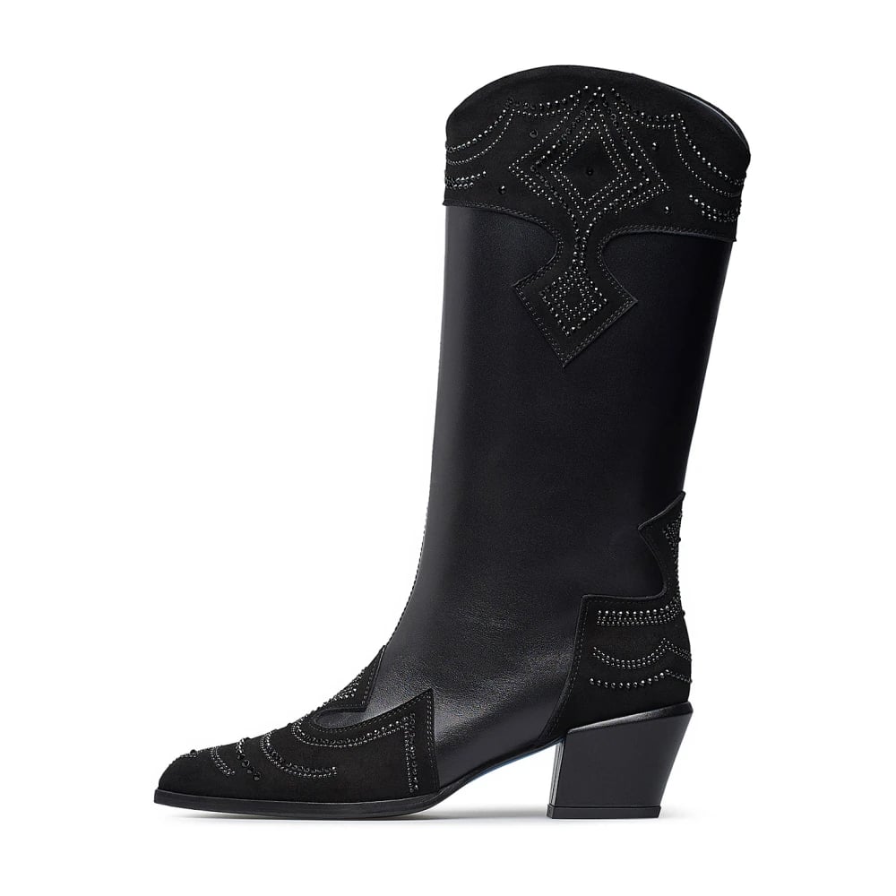 Philipp Plein, Skor , Dam, 38 EU, Läder, Cowboy Boots Mid Heels High Crystal
