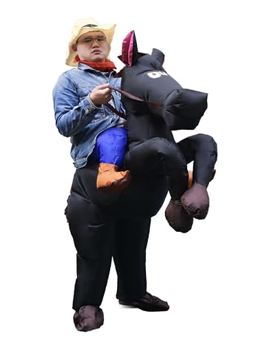 HIYAPATY Inflatable Horse Costume Cowboy Rider Adult Size Halloween Party Outfit