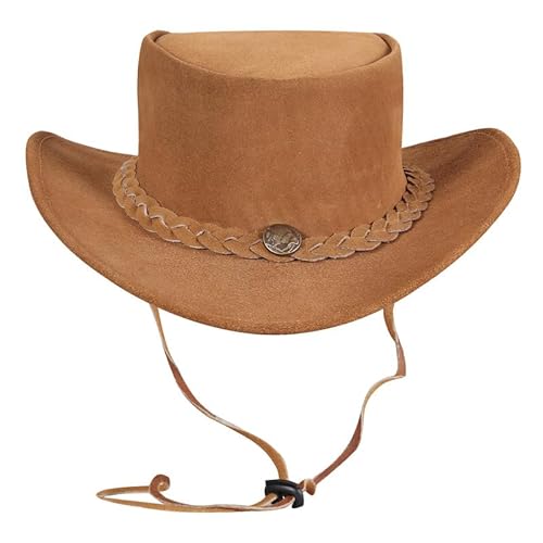 URBAN 5884 Cowboyhatt i äkta mocka, äkta kohud herr/dam västerländsk hatt, formbar brätte och justerbar hakrem, Solbränna, M