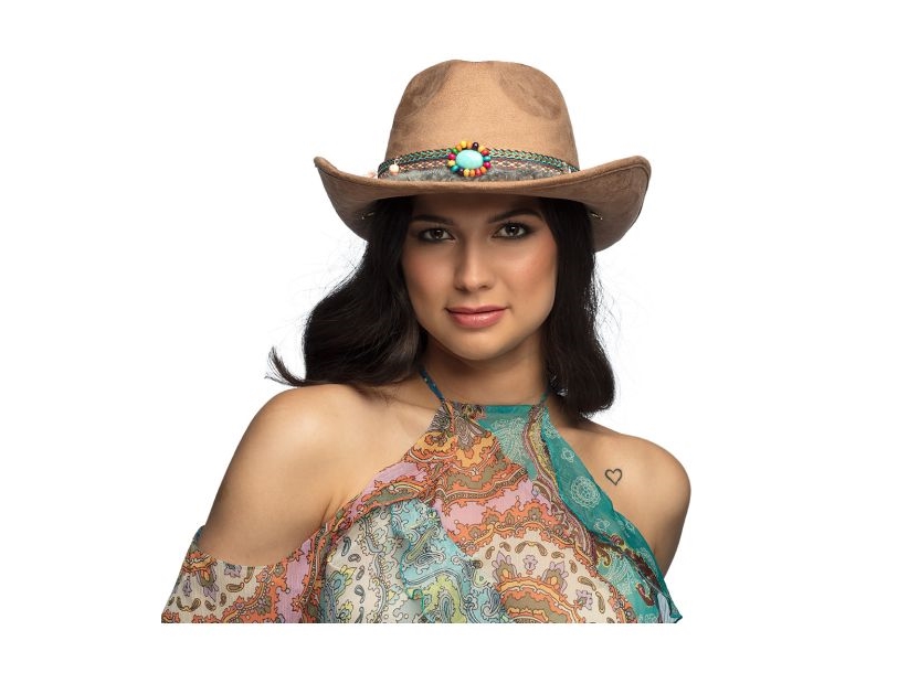 Saier tbo 7 stycken cowboy hatt tillbehörsset för kvinnor, västerländsk cowgirl kostym kit med cowboyhattar bälte boho halsband örhängen ringar armband för karneval karneval cosplay temafest