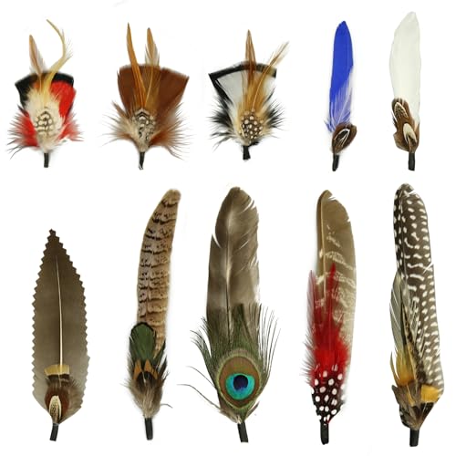 10 st hattfjädrar, naturliga fjädrar påfågelfjädrar för hattar, färgglada fjädrar pin cowboyhatt fjäder för västern cowboyhattar julfest hattar, fjädrar tillbehör gör-det-själv dekorationer (10 stil)