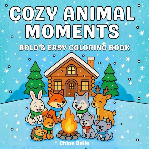 Cozy Animal Moments Coloring Book: Bold & Easy Hygge Inspired Designs Featuring Cute Winter Animals, Cozy Cabin Moments & Après-Ski Fun for Adults and Teens