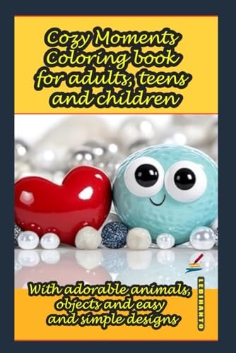 Cozy Moments Coloring book for adults, teens and children, with adorable animals, objects and easy and simple designs