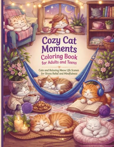 Cozy Cat Moments Coloring Book for Adults and Teens: Cute Feline Friends and Relaxing Meow Life Scenes for Stress Relief, Calm, and Mindfulness