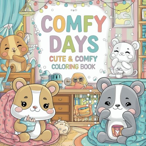 Comfy Days: Cute and Comfy Coloring Book for Adults and Teens with Featuring Super Cute Animal Characters in Cozy Hygge Moments for Relaxation