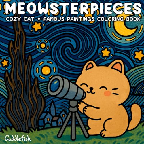 Meowsterpieces: Cute and Comfy Square Whimsical Art Therapy Coloring Book of Famous Paintings for Adults and Teens – Cozy Cat Moments in Bold and Easy Fantasy Scenes for Relaxation and Stress Relief