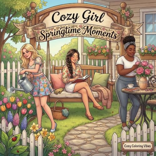 Cozy Girl Springtime Moments: Cute & Fun Relaxing Bold Line Adult Activity Coloring Book | Aesthetic Comfy Hygge Scenes, Floral Meadow Walks, Peaceful ... Haven Art Therapy Gift for Women & Teens