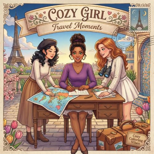 Cozy Girl Travel Moments: Relaxing Adult Activity Coloring Book | Aesthetic Comfy Hygge World Destinations, Vintage Souvenir Scenes, Nostalgic ... Art Therapy Gift for Seniors, Women & Teens