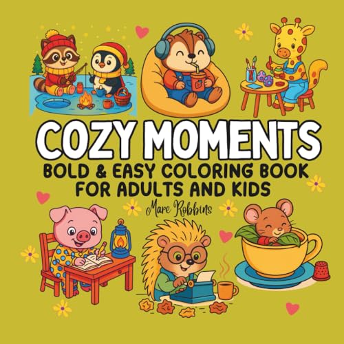 Cozy Moments: Bold and Easy Coloring Book for Adults and Kids