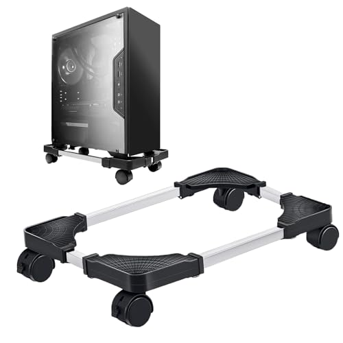TOATELU PC-CPU-hållare: Universell CPU-hållare i aluminium med 2 låsbara hjul och 2 360° vridbara hjul, för stationär dator eller datorfodral (svart)