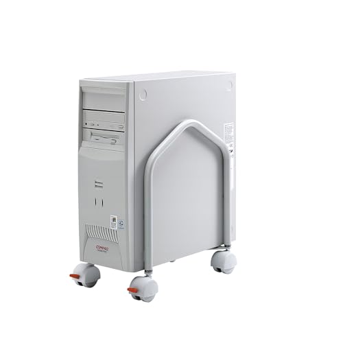 STOUCLA Mobil CPU-hållare, PC-stativ under skrivbord, universell fyrhjulig centralenhetshållare, datorskrivbord, vit
