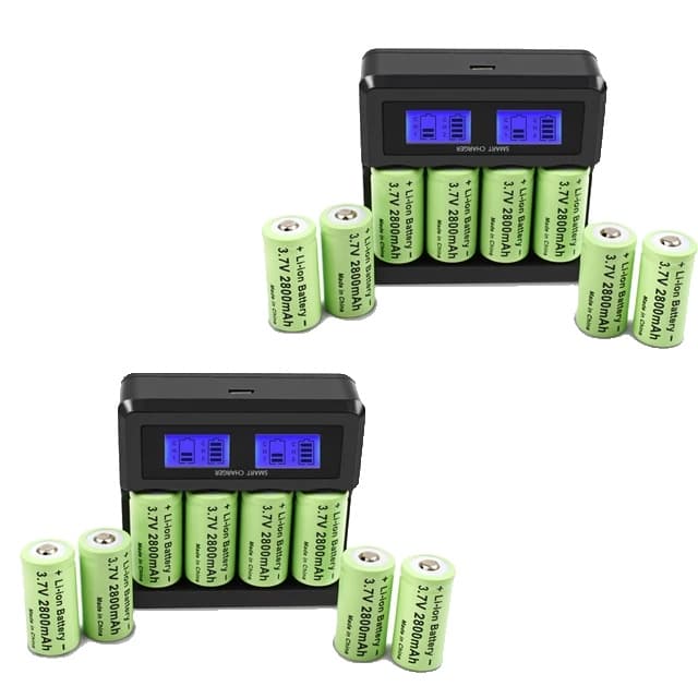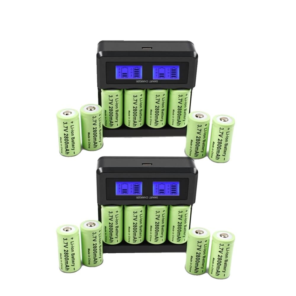 Uppladdningsbart batteri, 2800mAh kapacitet, kompatibelt med CR123A,16Batteri 2laddare