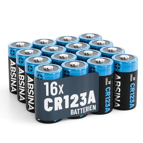 ABSINA 16 x CR123A 3 V litiumbatteri för kameror och mycket mer - CR123A läckagesäkert och långvarigt batteri - CR123A-batterier med 1 300 mAh - CR123-batterier, CR123A 3V, 123-batterier