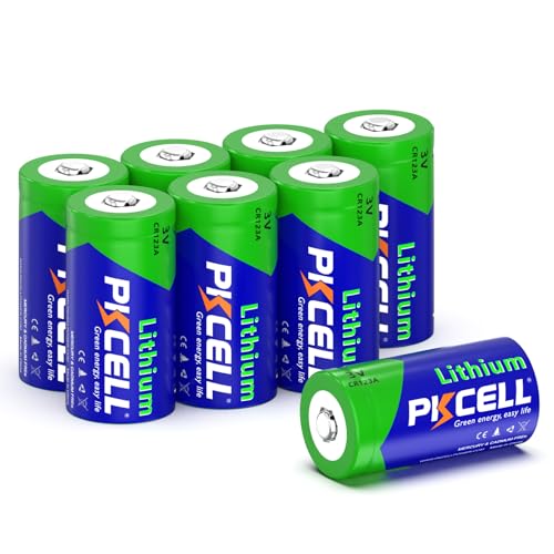 PKCELL CR123A 3 V litiumbatteri, icke uppladdningsbart litium 123 batteri 1 500 mAh för kameror nyckellösa lås larm smarta sensorer fotoblixt, 8 paket