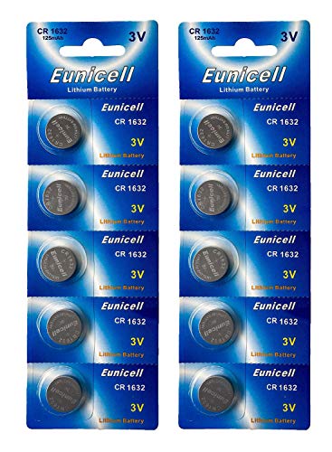 10 x CR1632 3 V litium knappcell 120 mAh (2 blisterkort med 5 batterier) engångsmärkesvaror Eunicell