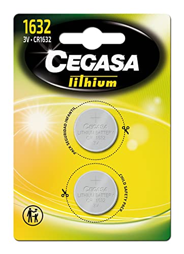 Cegasa CR1632 - förpackning med 2 litiumknappbatterier, grön färg