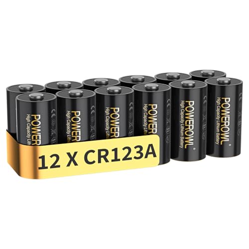 POWEROWL CR123A batterier 3 V litium 12 stycken, långvarig effekt 1 500 mAh 3 volt 123 C123 CR17345 batterier