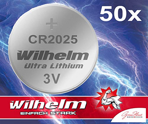 Wilhelm 50 x knappcell CR2025 batteri litium 3 V CR 2025 industrivara