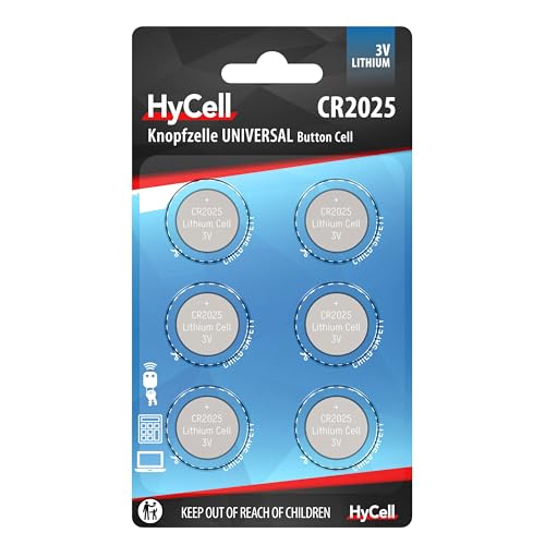 HyCell 6 x CR2025 batteri litium knappcell 3 V, högkvalitativa knappbatterier/perfekt för bilnyckel TAN-enhet miniräknare barnleksaker fjärrkontroll klockor etc.