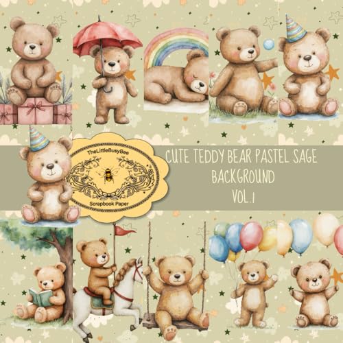 Cute Teddy Bear Pastel Sage Background Vol.1: 20 Sheets Double Sided, 8,5" x 8,5", Craft Paper Pad For Scrapbooking, PastelTeddy Bear Collection ... Supplies & Collage Art Craft Paper Project