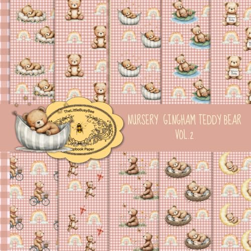 Nursery Teddy Bear With Gingham Vol.2: 20 Sheets Double Sided, 8,5" x 8,5", Craft Paper Pad For Scrapbooking, Nursery Teddy Bear Collection Ephemera ... Supplies & Collage Art Craft Paper Project