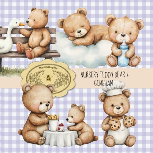 Nursery Teddy Bear With Gingham Vol.1: 20 Sheets Double Sided, 8,5" x 8,5", Craft Paper Pad For Scrapbooking, Teddy Bear Collection Ephemera Scrapbook ... Supplies & Collage Art Craft Paper Project