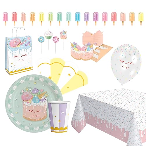 Amscan 9917840 - Crazy Cake Party Set, 56 stycken, engångsservis och dekoration, barns födelsedag