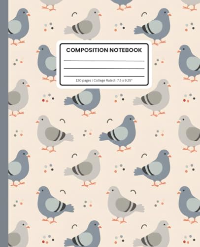 Composition Notebook College Ruled: Cute Pigeon Pattern on Cream: City Bird Aesthetic Journal for School, Writing & Notes