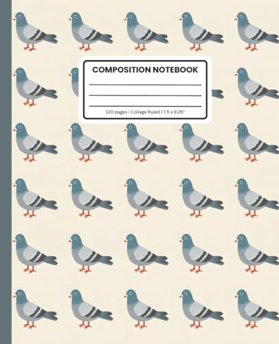 Composition Notebook College Ruled: City Pigeon Pattern on Soft Cream: Cute Urban Bird Aesthetic Journal for School, Writing & Notes