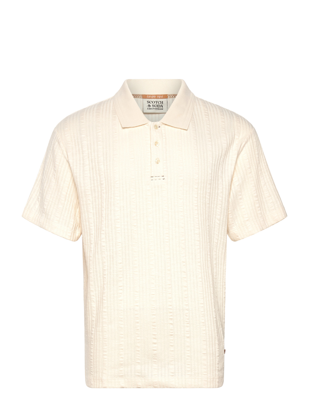 Scotch & Soda Structured Ribbed Relaxedfit Polo - Cream - S