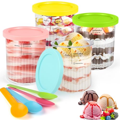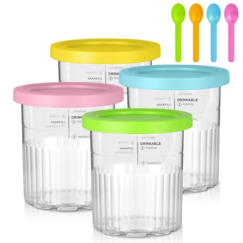 Morofme Ersättning för Ninja Creami Deluxe Pints och lock 4-pack – 24 oz återanvändbar glasbehållare koppar glas behållare set kompatibel med NC501 NC500 serien Ninja Ice Cream Maker