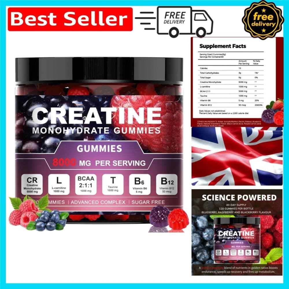 120 Creatine Monohydrate Gummies 8000mg L-Carnitine & Taurine B6 B12 33% OFF RRP