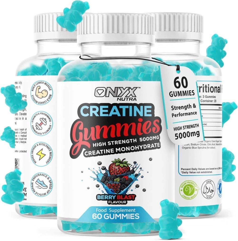 onyx Creatine Monohydrate Gummies 5000mg Vegan, Berry Blast 60 Gummies