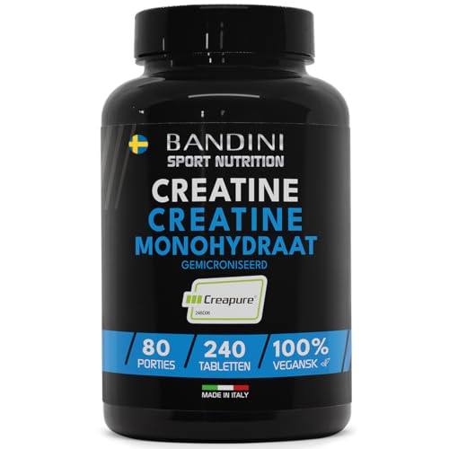 Bandini® Creatine CREAPURE® Monohydrate 240 Tabletter - Tillskott för träning, sport, gym och före träning - 100% vegan - Baserat på kreatinmonohydrat för ATP och återhämtning